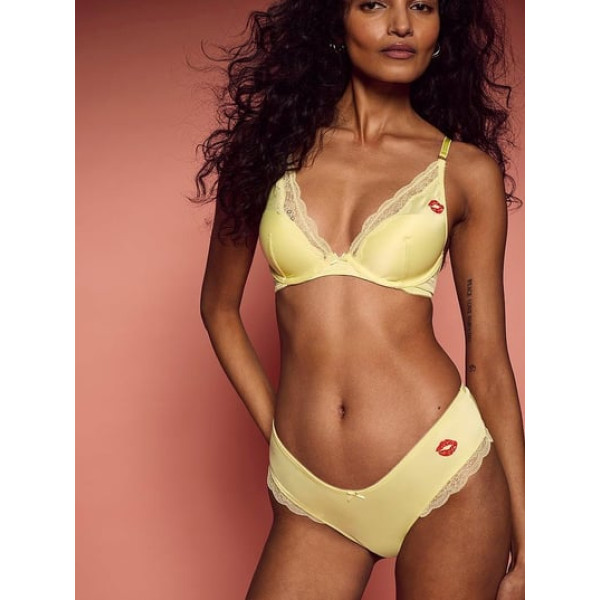 Комплект Victoria's Secret Tease Lightly Lined Sheer Shimmer Plunge Bra +Cheeky Thong Lemonade