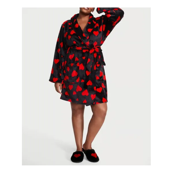 Модель: Victoria's Secret Cozy Robe Short Black Lipstick Hearts