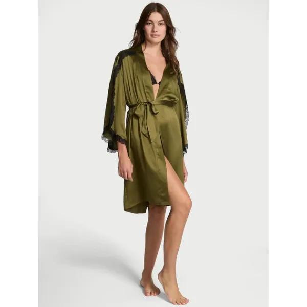 Халат Victoria's Secret Satin Rose Lace-Trim Midi Robe