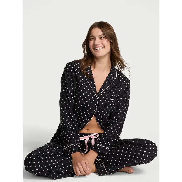 Пориньте у комфорт, створений для найзатишніших вечорів. Наша фірмова піжама виготовлена з поєднання ніжної бавовни та ультрам’якого модалу — саме така фланель, у яку хочеться загорнутися цілий сезон. М’яка щіткова текстура та стильний дизайн роблять цей комплект ідеальним для відпочинку вдома. Топ на ґудзиках прикрашений акуратним вишитим логотипом бренду на нагрудній кишені.
