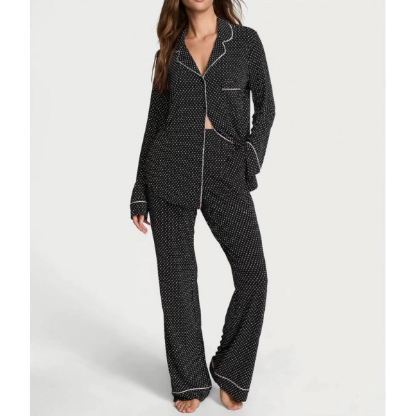 Піжама (Сорочка + Штани) Victoria's Secret Modal Long Pajama Set Black With Ehite Polka Dots