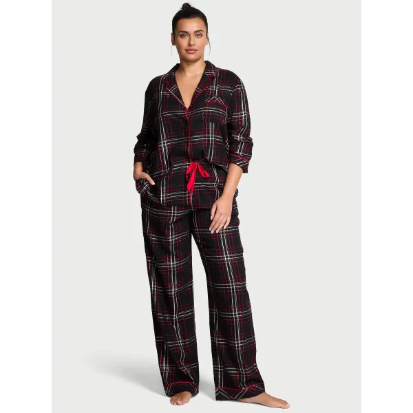 Піжама (Сорочка + Штани ) жіноча Victoria's Secret Flannel Wrap Long Pj Black/Vs White/Red