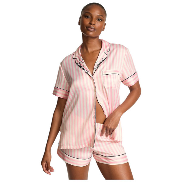 Піжама Victoria's Secret ( Шорти + Рубашка)Glazed Satin Short Pajama Set PINK STRIPES